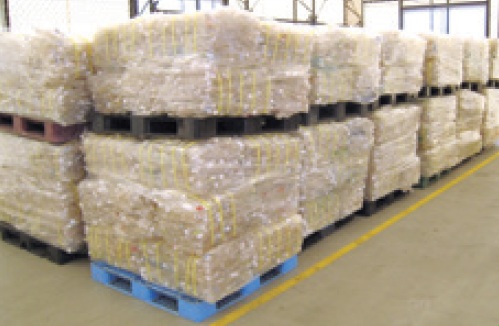 フレークのままや、フレークをペレットにして、リサイクル製品の工場に運び、PETボトル、卵パック、繊維などをつくります。