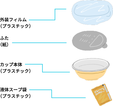 カップめんのように容器がいくつかに分かれるときは、その一部にまとめて表示されています。