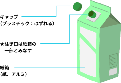 内がわにアルミを使った酒パックのように、2つの材料がはリ合わさっているときは、重いほうの材料が表示されています。